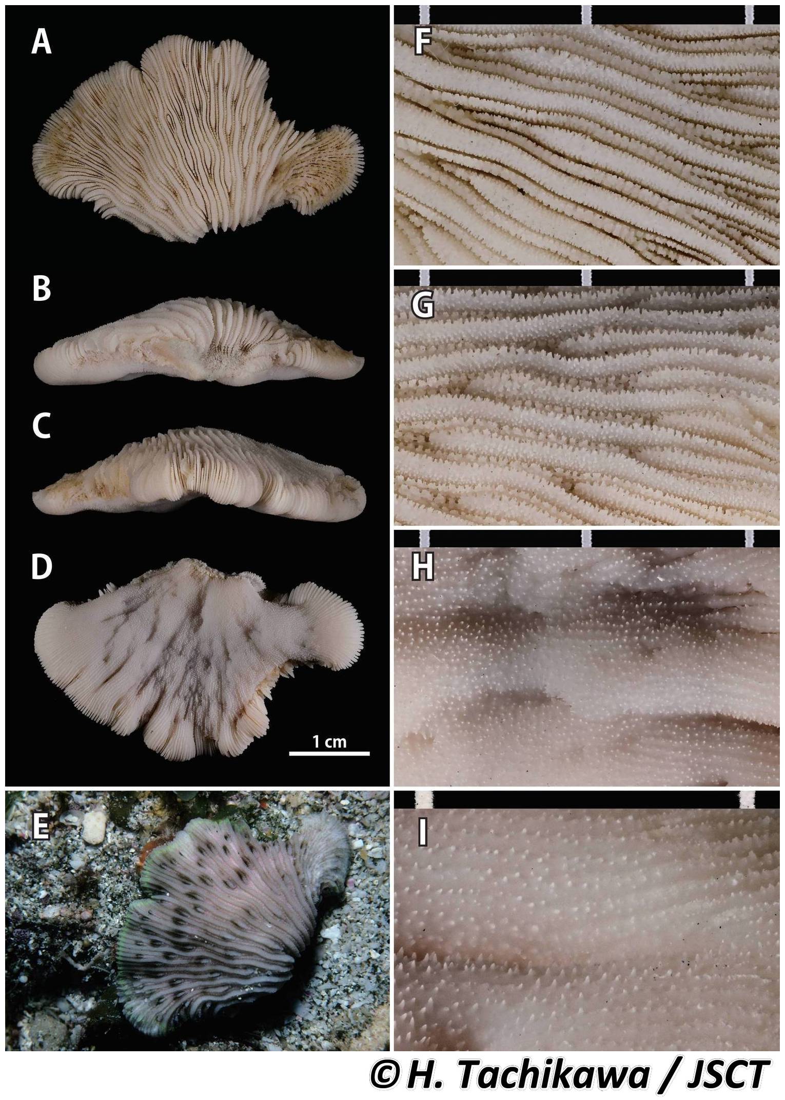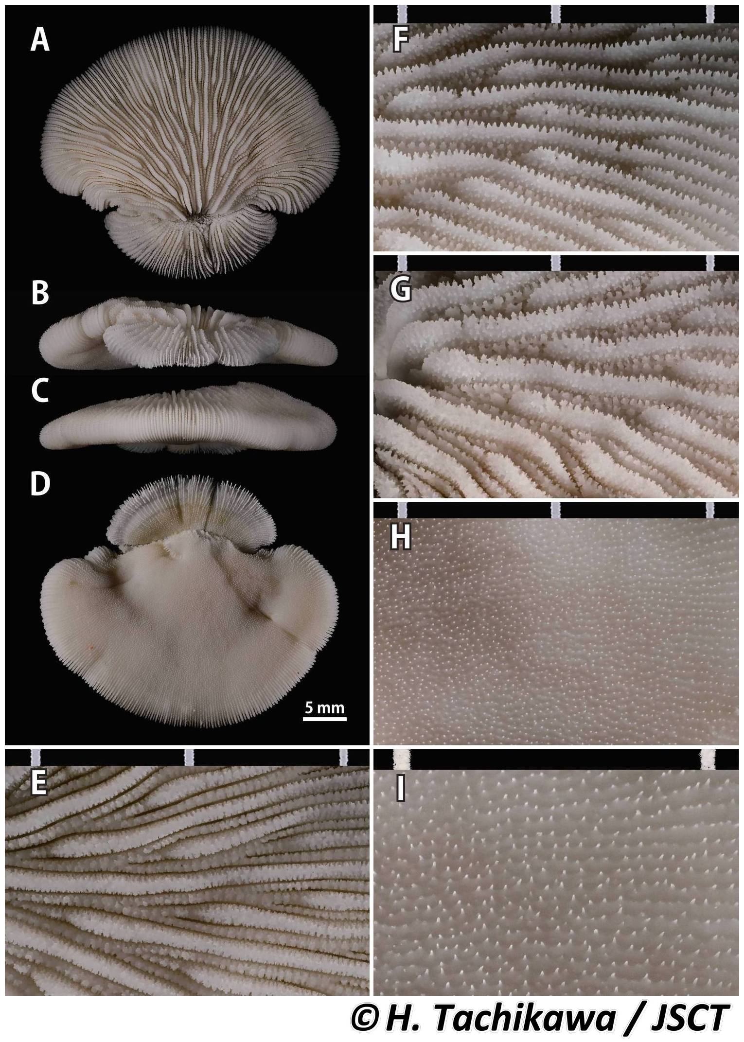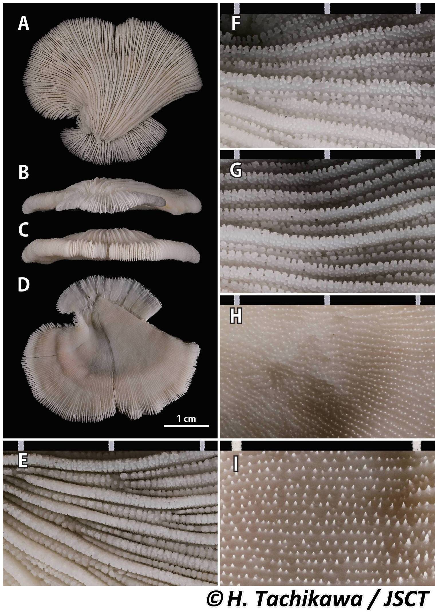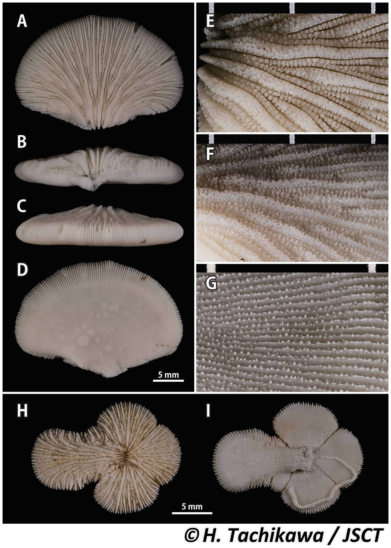 2009-07-15. A–G: CMNH-ZG 05513a.サンゴ体の長径 27.4 mm. H–I: CMNH-ZG
