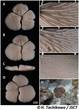 (図1, 7, 9, 11, 14) からほとんど発達しないもの (図2, 4, 10, 12) まで変異が大きい。触手葉の発達したサンゴ体では、その両側の隔壁は触手葉を囲むように両側に湾曲する。隔壁の縁辺には不規則な形状の顆粒が並ぶ。顆粒は隔壁面に直交する方向に伸び、角張った突起状となることが多い。顆粒