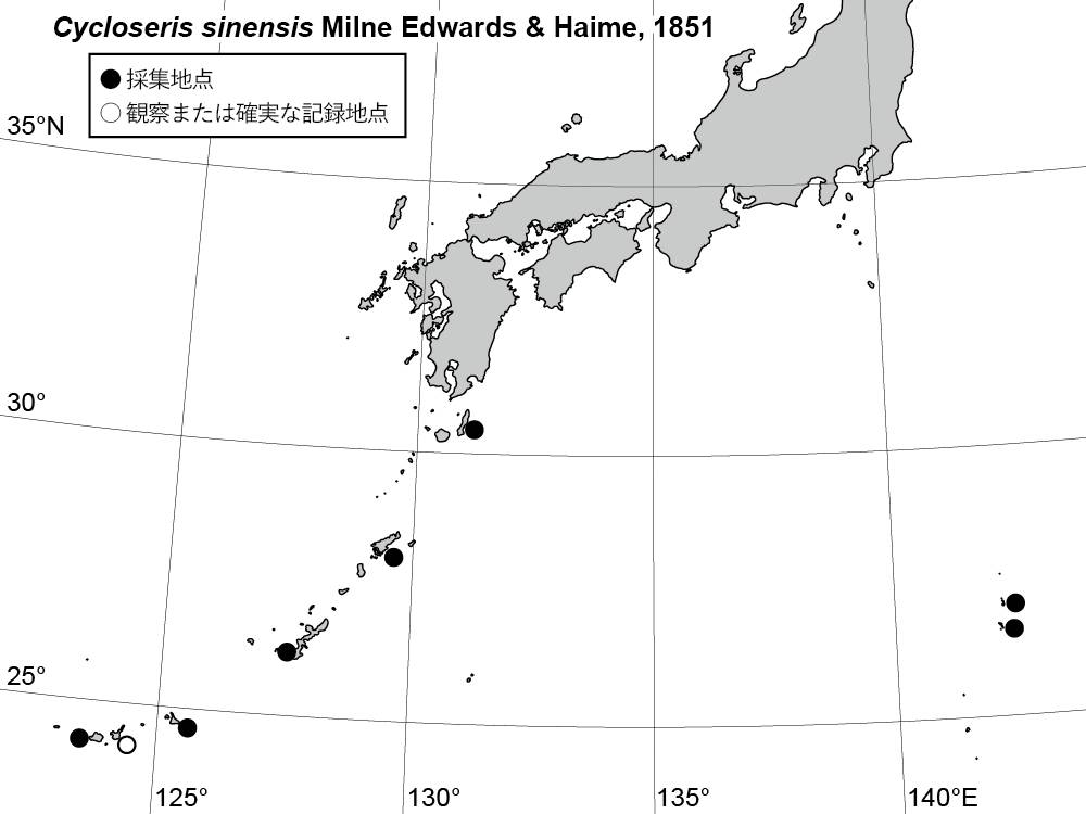 Cycloseris sinensis Milne Edwards & Haime, 1851: 112 [les mers de la Chine]; Claereboudt 1991: 21; Veron 2000: vol. 2, 238, figs. 1, 2, 1 skeleton fig.; Hoeksema 2014: 73; Sugihara et al. 2015: 92, 3 figs.; Yokochi et al. 2019: 45.